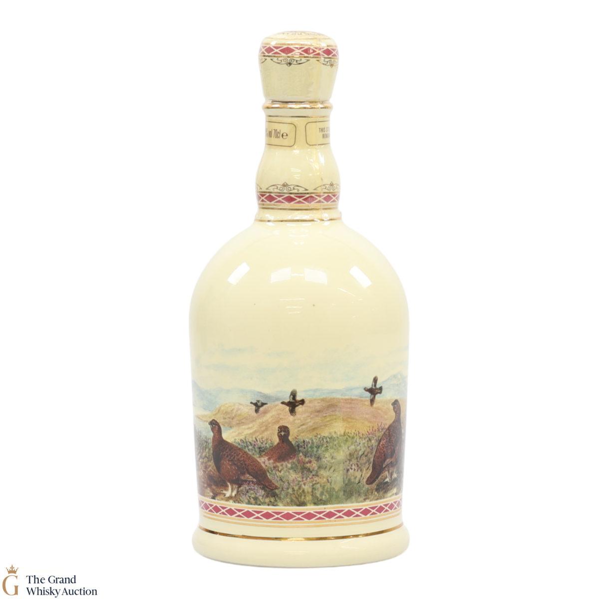 A bottle of Famous Grouse housed within a ceramic 'Highland' decanter. First blended by Matthew Gloag & Son in 1896, as of 2013, it has been the highest-selling brand of whisky in Scotland since 1980.