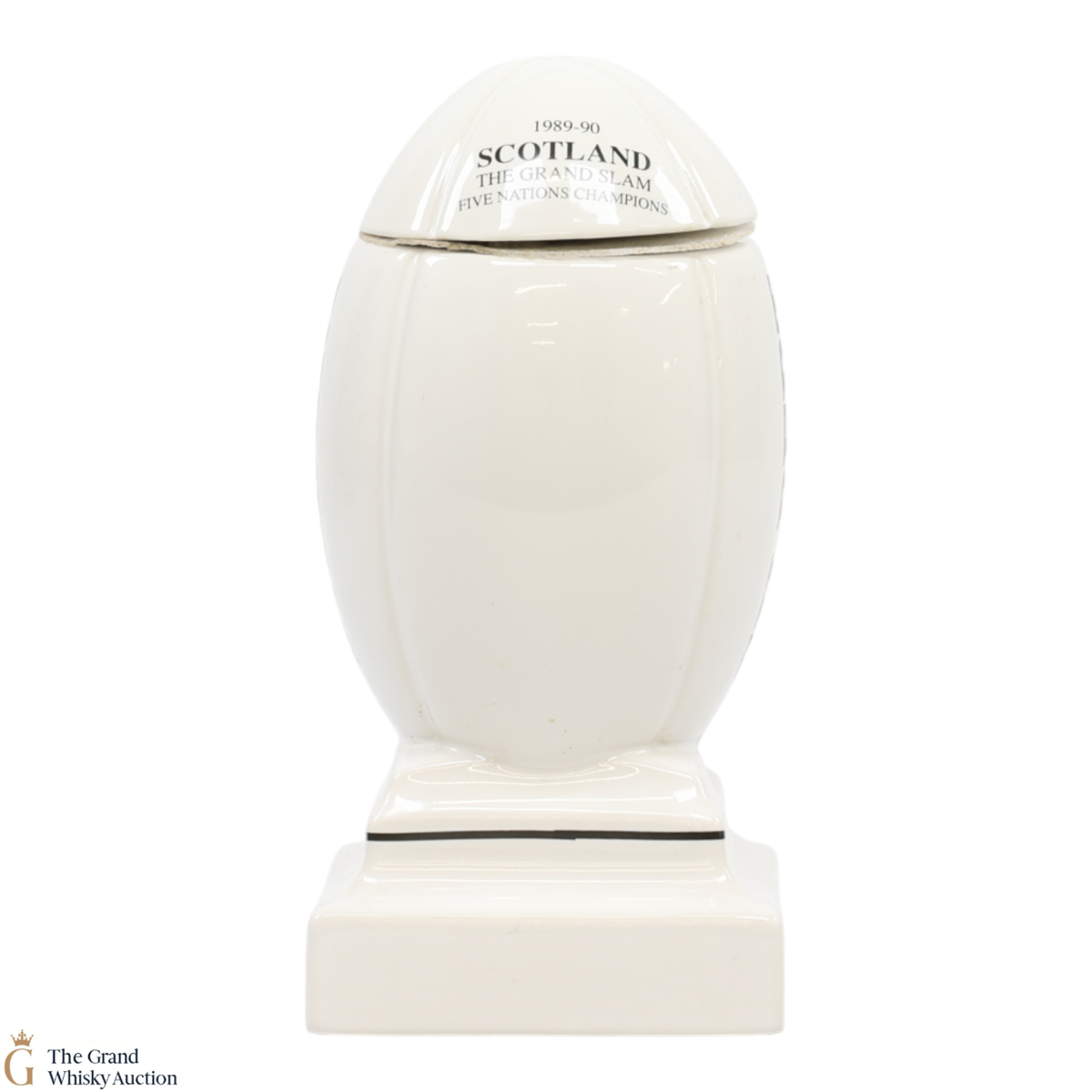 A commemorative bottle of 15 year old Findlater's blended Scotch, in a replica of the Gilbert Rugby ball.