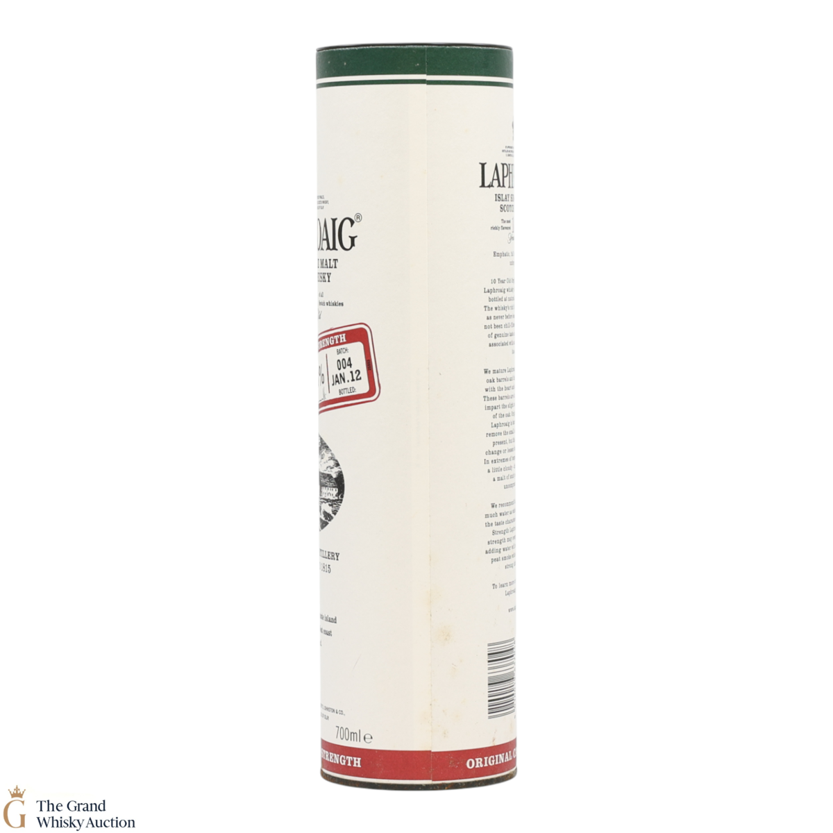 This bottling is from batch 004, original cask strength bottling of the medicinal 10 year old from Islay's bestselling distillery, Laphroaig. In making Laphroaig, malted barley is dried over a peat fire. The smoke from this peat, found only on Islay, gives Laphroaig its particularly rich flavour. This release was bottled at 58.3% in January 2012.