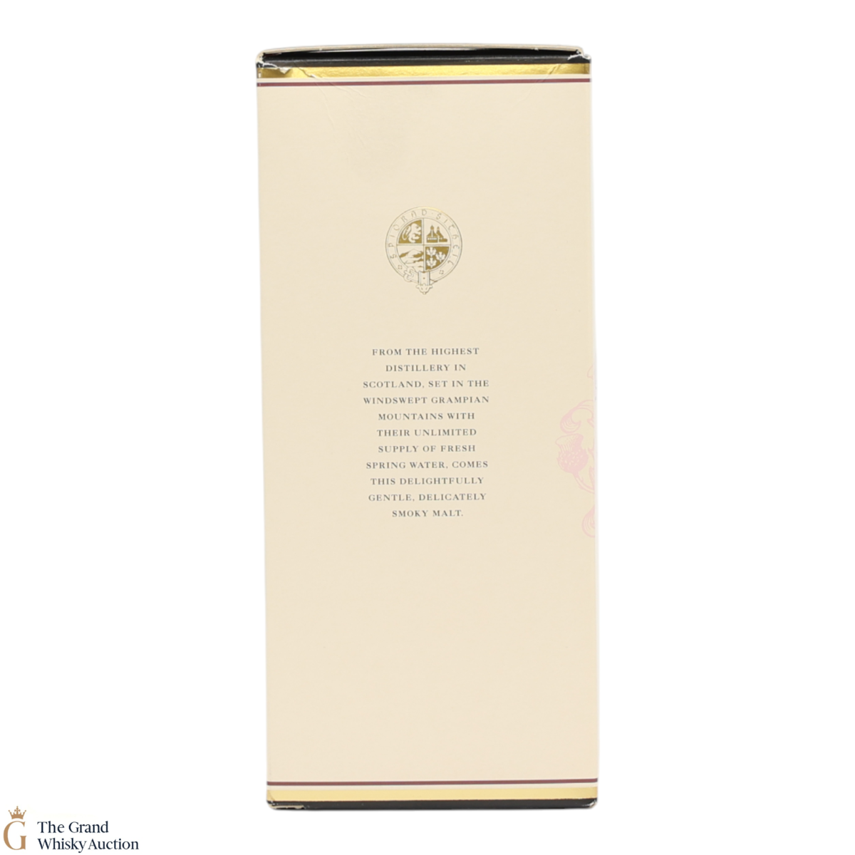Due to the various ages of bottles and their seals, the condition of liquid is at the buyer's discretion and no claim can be lodged against failure/leakage in transit. Loss and breakage cover is available at 3% of the hammer price as standard. If the lot is not insured, no claim can be lodged against the courier or The Grand Whisky Auction for breakage or loss in transit.