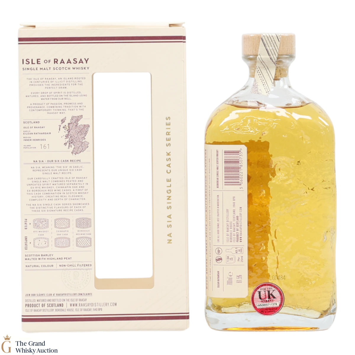 This peated single malt from the Isle of Raasay Distillery was matured in an ex-rye cask, this spirit was created to show the distinctive styles and characteristics of the 6 Isle of Raasay single malt recipe casks. Bottled at 61.5% ABV.