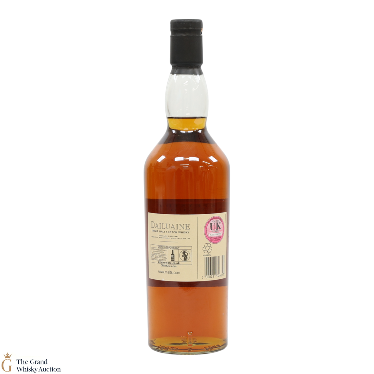 Due to the various ages of bottles and their seals, the condition of liquid is at the buyer's discretion and no claim can be lodged against failure/leakage in transit. Loss and breakage cover is available at 3% of the hammer price as standard. If the lot is not insured, no claim can be lodged against the courier or The Grand Whisky Auction for breakage or loss in transit.
