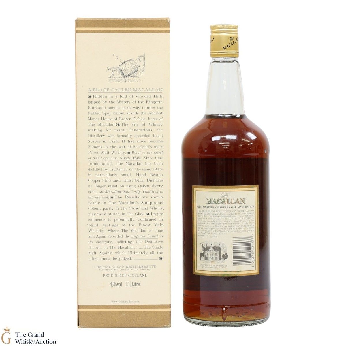 This is a 1.13-litre bottling of 12 year old single malt from Macallan, bottled in the 1990s. Very collectable indeed.