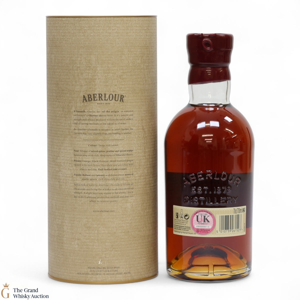 Meaning 'of the origin' in Gaelic, A'bunadh is made in homage to Aberlour's founder, James Fleming. This is batch No. 52 of the popular A'Bunadh single malt. It has been matured in Spanish Oloroso sherry butts and bottled at cask strength at 60.5% creating a dark luxurious whisky.
