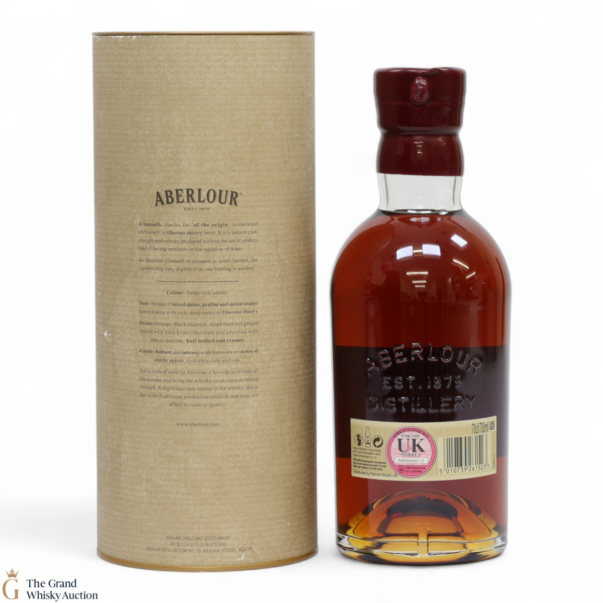 Distilled at the Aberlour Distillery, this single malt was matured in Spanish oloroso sherry butt barrels until being bottled at the cask strength of 59.7% ABV. This is batch 53 of the A'Bunadh.