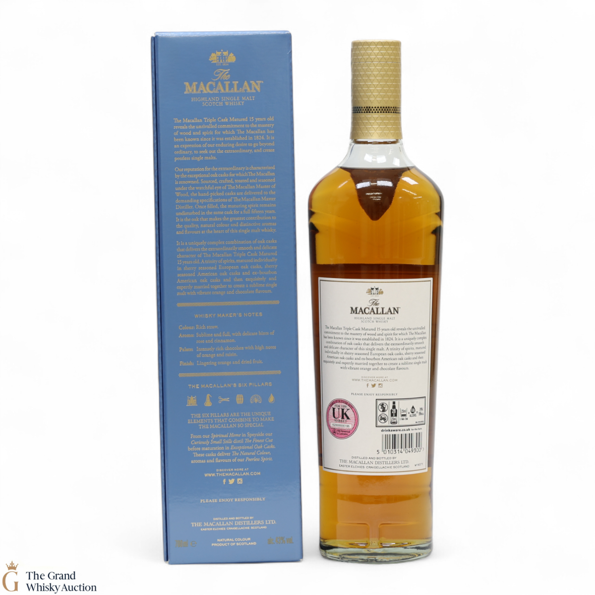 This 15-year-old Macallan single malt was released in 2018 as part of the Triple Cask range (which was brought out to replace the Fine Oak range in 2018). This whisky has been matured for 15 years in a combination of European sherry seasoned casks, American sherry seasoned casks and American ex-bourbon casks.