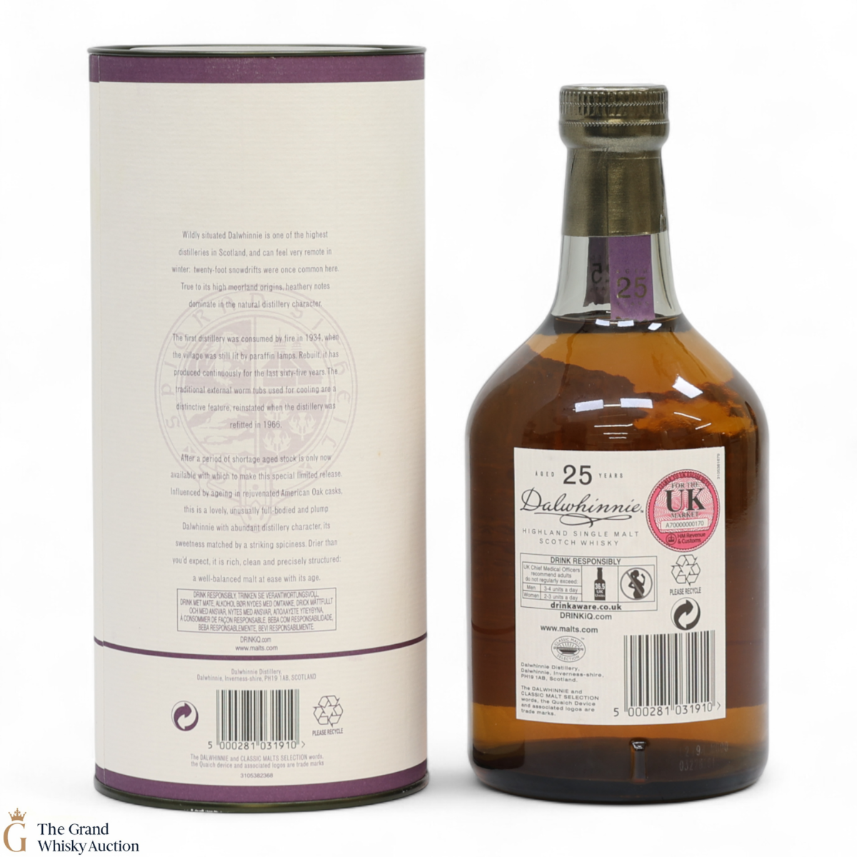 Due to the various ages of bottles and their seals, the condition of liquid is at the buyer's discretion and no claim can be lodged against failure/leakage in transit. Loss and breakage cover is available at 3% of the hammer price as standard. If the lot is not insured, no claim can be lodged against the courier or The Grand Whisky Auction for breakage or loss in transit.