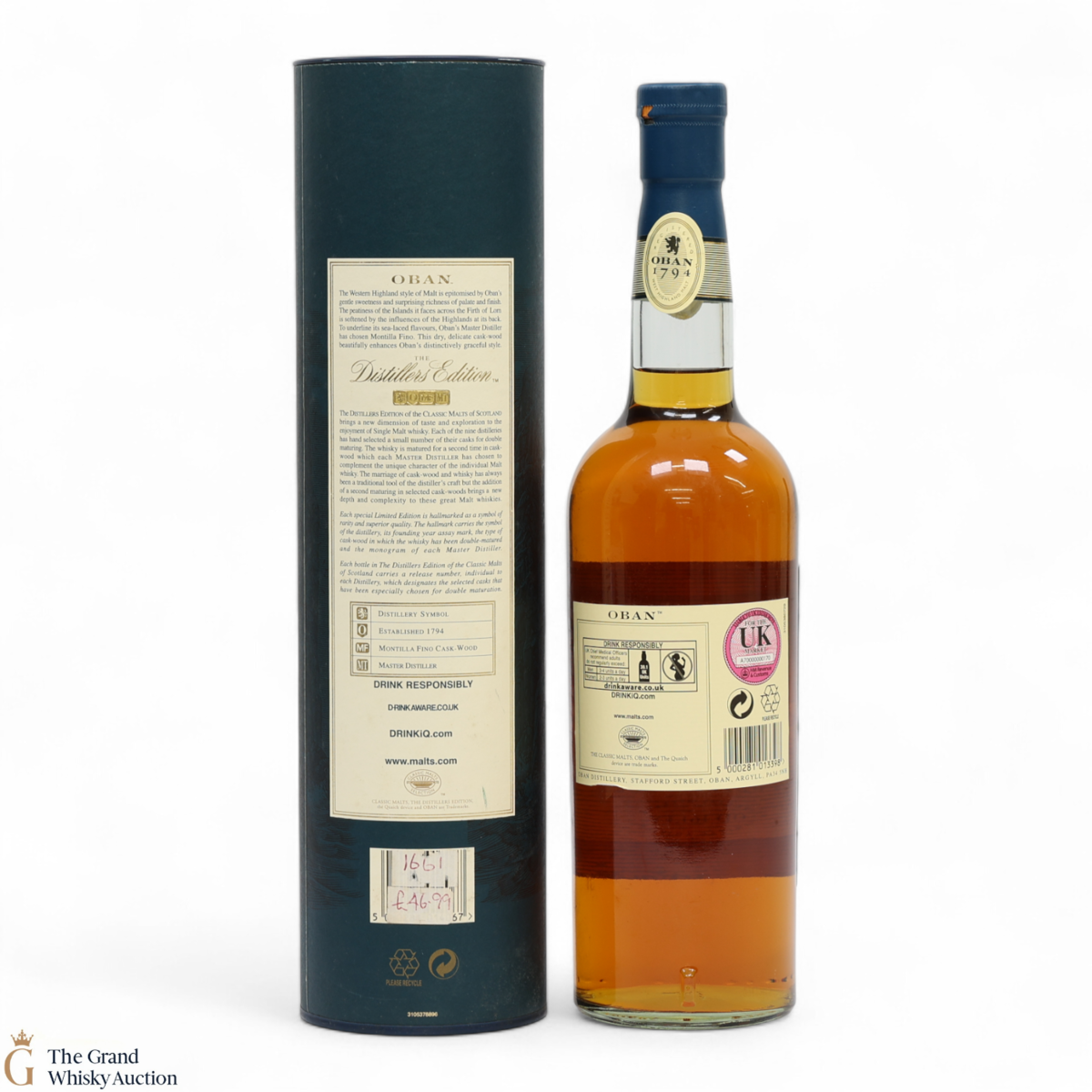 A release of the Oban entry in Diageo's Distillers Edition range. It is a special limited edition release, distilled in 1997 and finished in Montilla Fino casks to spice up the distillery's signature maritime character.