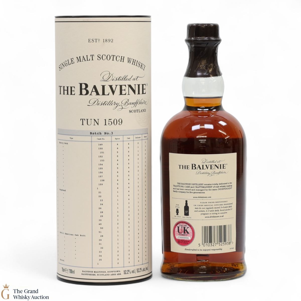 This is the 3rd batch of Balvenie's Tun 1509 single malt Scotch whisky.