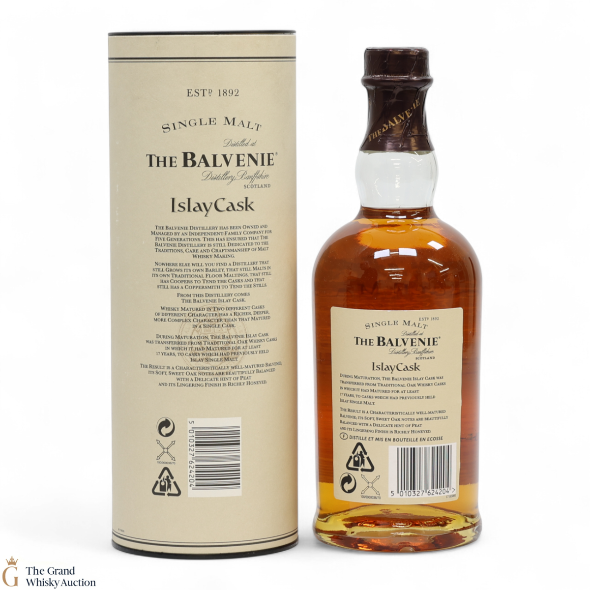 This is an increasingly rare bottling of Balvenie. The IslayCask features Balvenie single malt which had matured in traditional oak casks for at least 17 years, that was then transferred it into 94 casks which had previously held Islay single malt.