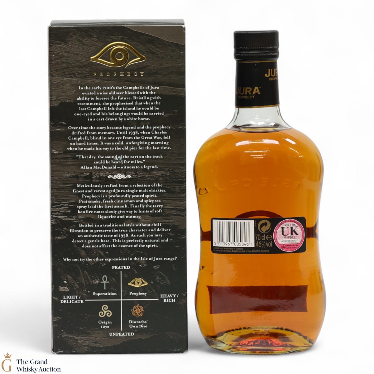 This limited annual release is a heavily peated edition from the Isle of Jura. Prophecy is made from a selection of old and rare Jura whiskies. Bottled in a traditional style at an ABV of 46% in a 70cl size.