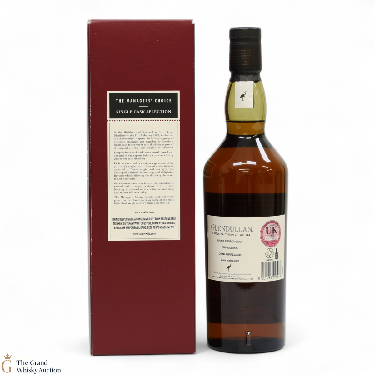 Due to the various ages of bottles and their seals, the condition of liquid is at the buyer's discretion and no claim can be lodged against failure/leakage in transit. Loss and breakage cover is available at 3% of the hammer price as standard. If the lot is not insured, no claim can be lodged against the courier or The Grand Whisky Auction for breakage or loss in transit.