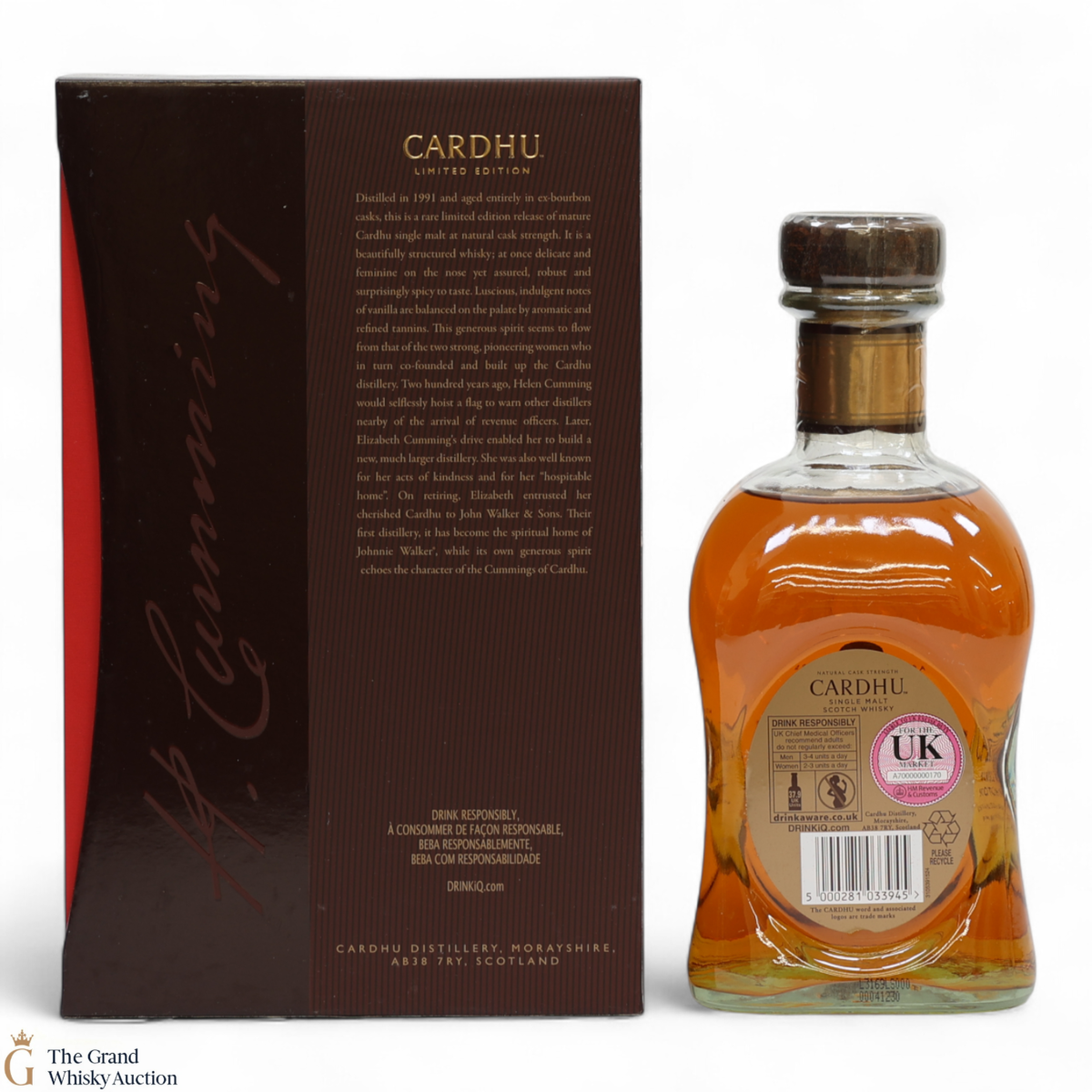 Due to the various ages of bottles and their seals, the condition of liquid is at the buyer's discretion and no claim can be lodged against failure/leakage in transit. Loss and breakage cover is available at 3% of the hammer price as standard. If the lot is not insured, no claim can be lodged against the courier or The Grand Whisky Auction for breakage or loss in transit.