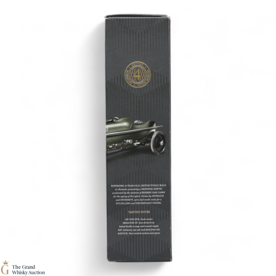 Edition 4 of the Bowmore x Aston Martin collaboration celebrates the iconic Aston Martin GP 'TT2'. This car was designed to take part in the French Grand Prix in 1922, a highly risky and significant race. A great pairing for the dark and intense 10-year-old, with intense depth from the marriage of Spanish oak sherry casks and hogsheads.