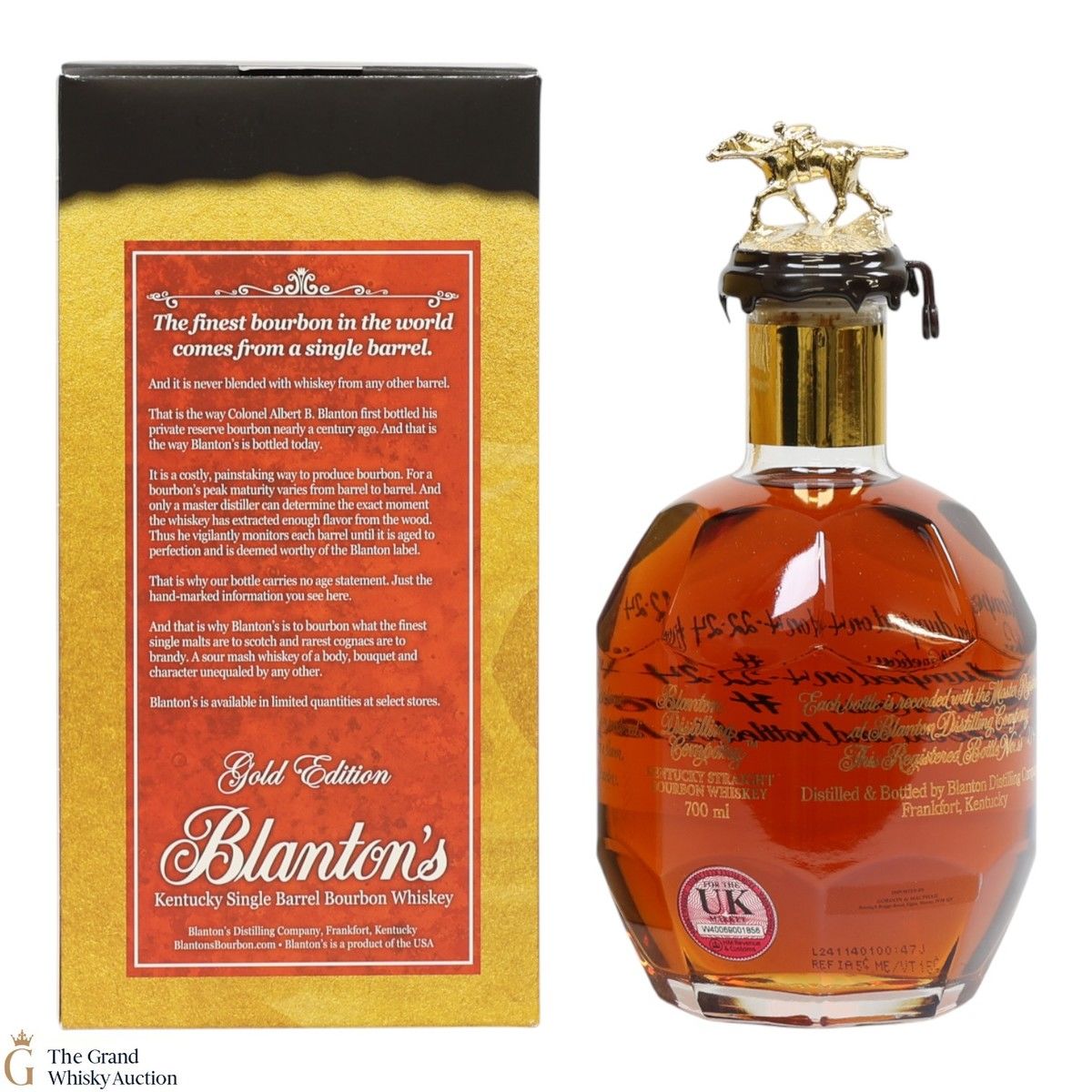 PLEASE NOTE: The wax seal on Blanton's bottles are prone to cracking in transit due to their design. Therefore, as stated in our T&C’s, we do not and will not accept liability should the seal be breached, broken, split or leak in transit. Additionally, please know due to the design of the internal cardboard packaging that surrounds the top of the bottles, it too may be torn. By bidding on this lot you have understood this to be true. Insurance is for complete breakage or loss in transit only.