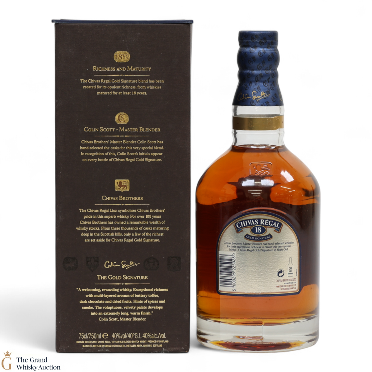This is a 75cl bottling of Chivas Regal 18-Year-Old Gold Signature. The packaging and bottling code indicate that it was bottled in 2010.