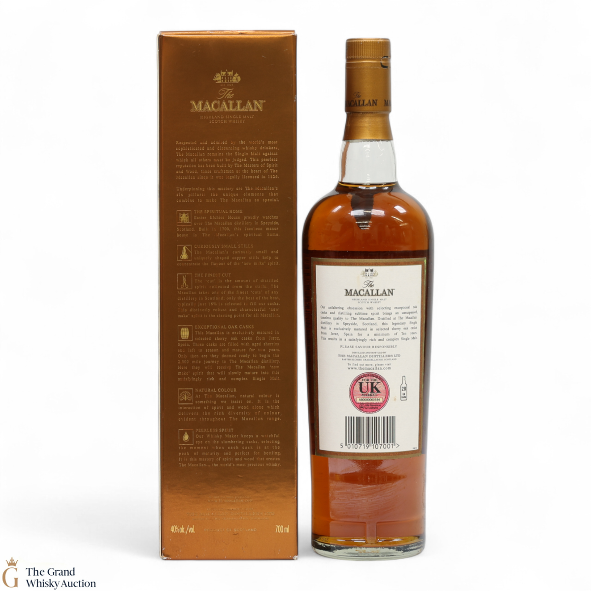 Distilled at the world-renowned Macallan Distillery in Speyside, this single malt was matured exclusively in sherry oak casks from Jerez, Spain. It was aged for a total of 10 years prior to bottling at a strength of 40% ABV.