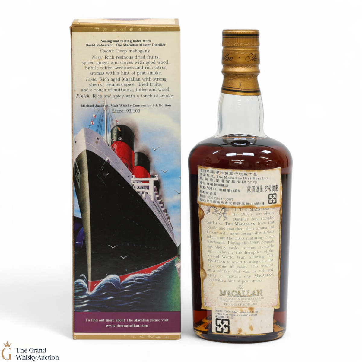 During the 1950s, Macallan whisky was as rich and spicy as modern-day Macallan, but with a hint of peat smoke. This was due to Spanish oak sherry casks becoming available again, following the disruption of the second world war. Macallan was ale to revert to using only first and second fill casks. 50cl, 40%.