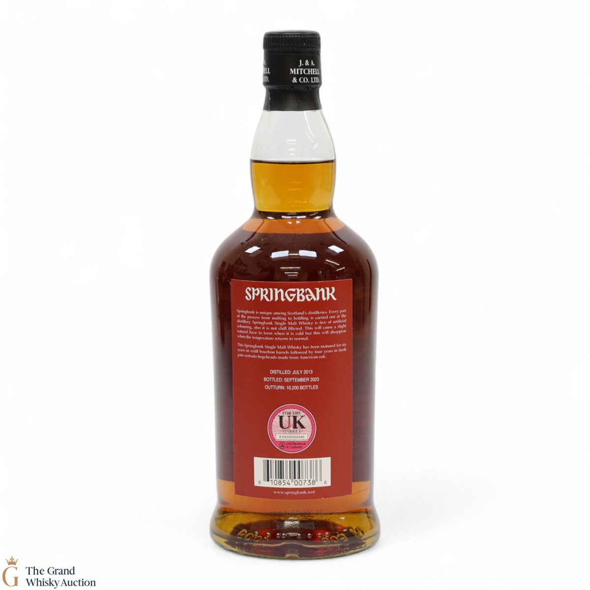 This Springbank Single Malt Whisky was distilled in July 2013 and has been matured for six years in refill bourbon barrels followed by four years in fresh palo cortado hogsheads made from American oak. It was then bottled in September 2023 at a strength of 55% ABV with an outturn of 10,200 bottles.