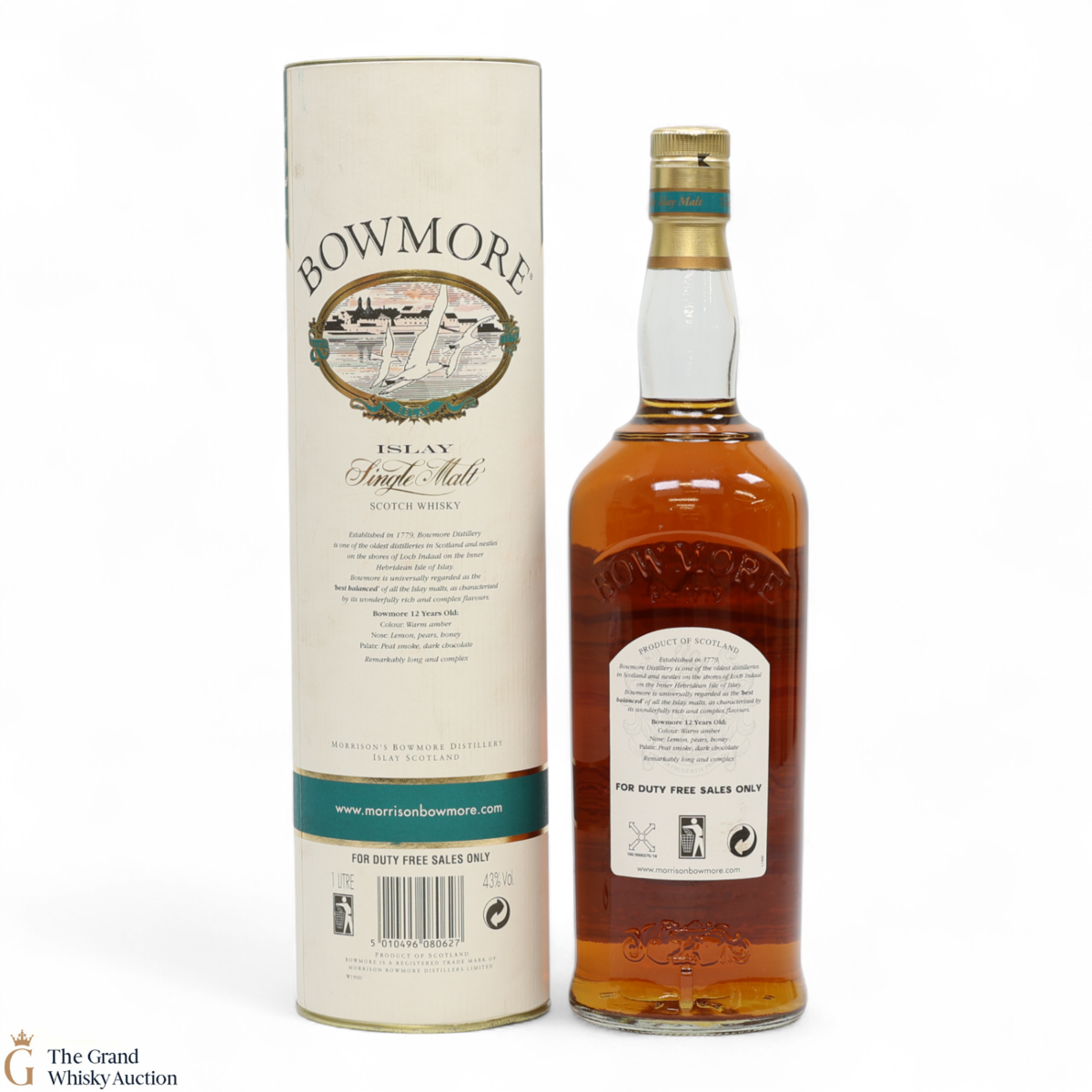 This is a 1L bottling of 12-Year-Old Bowmore. This single malt has coastal notes with gentle peat.