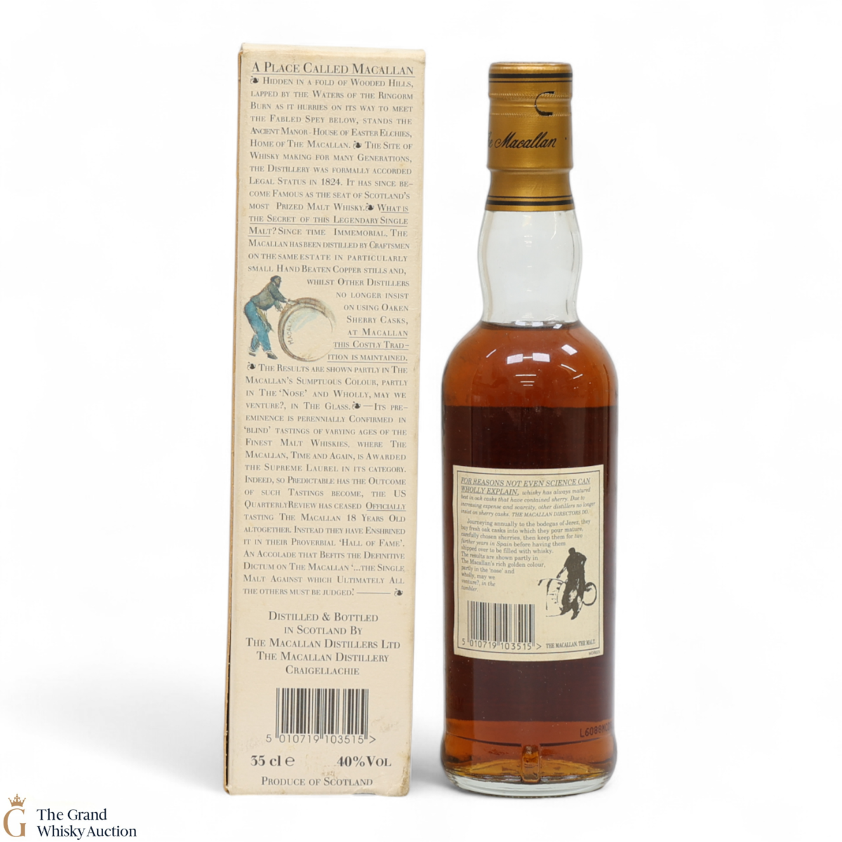 This is an older style of bottling of the famous Macallan 10-year-old malt whisky. It comes presented in the all-white box showing Easter Elchies House, which is increasingly hard to find. This malt was matured in sherry wood.