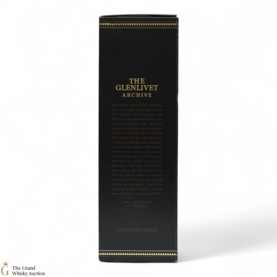Glenlivet 21-Year-Old Archive is a single malt scotch that won gold medals three years running at the International Wine and Spirit Competition 2005, 2006, and 2007. It has also won double gold at the San Francisco World Spirits Competition.