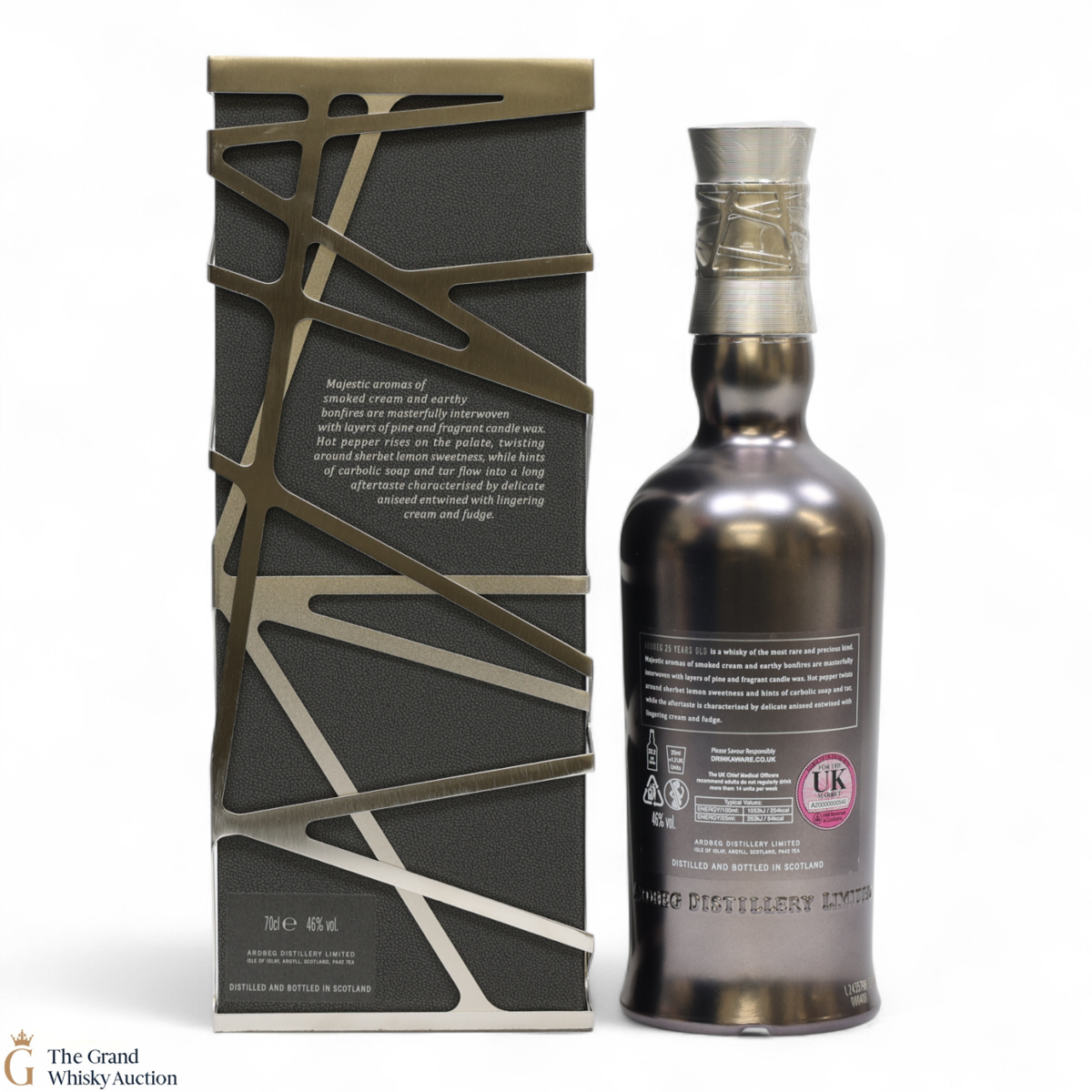 This guaranteed 25 Year old by Ardbeg has been produced from incredibly rare casks which were filled during some of the distillery's darkest day's. Known for its peated whiskies this is one of Ardbegs oldest aged whisky to join the core range. This expression proves that age cannot tame Ardbeg’s smoky power, but also that it can yield some of the most complex and majestic flavours ever from Ardbeg Distillery.