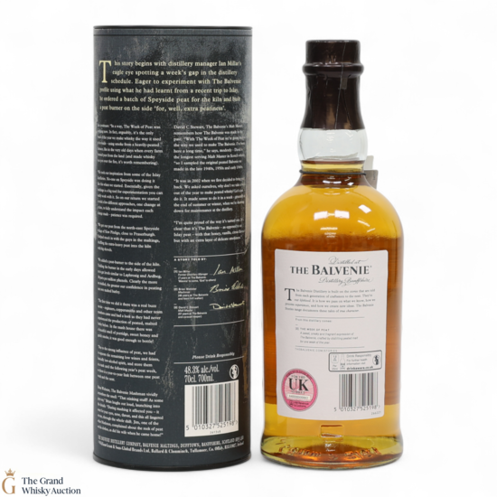 Since 2002, the distillery has dedicated one week each year to run heavily peated barley through the whisky-making process creating a distinctly different Balvenie.