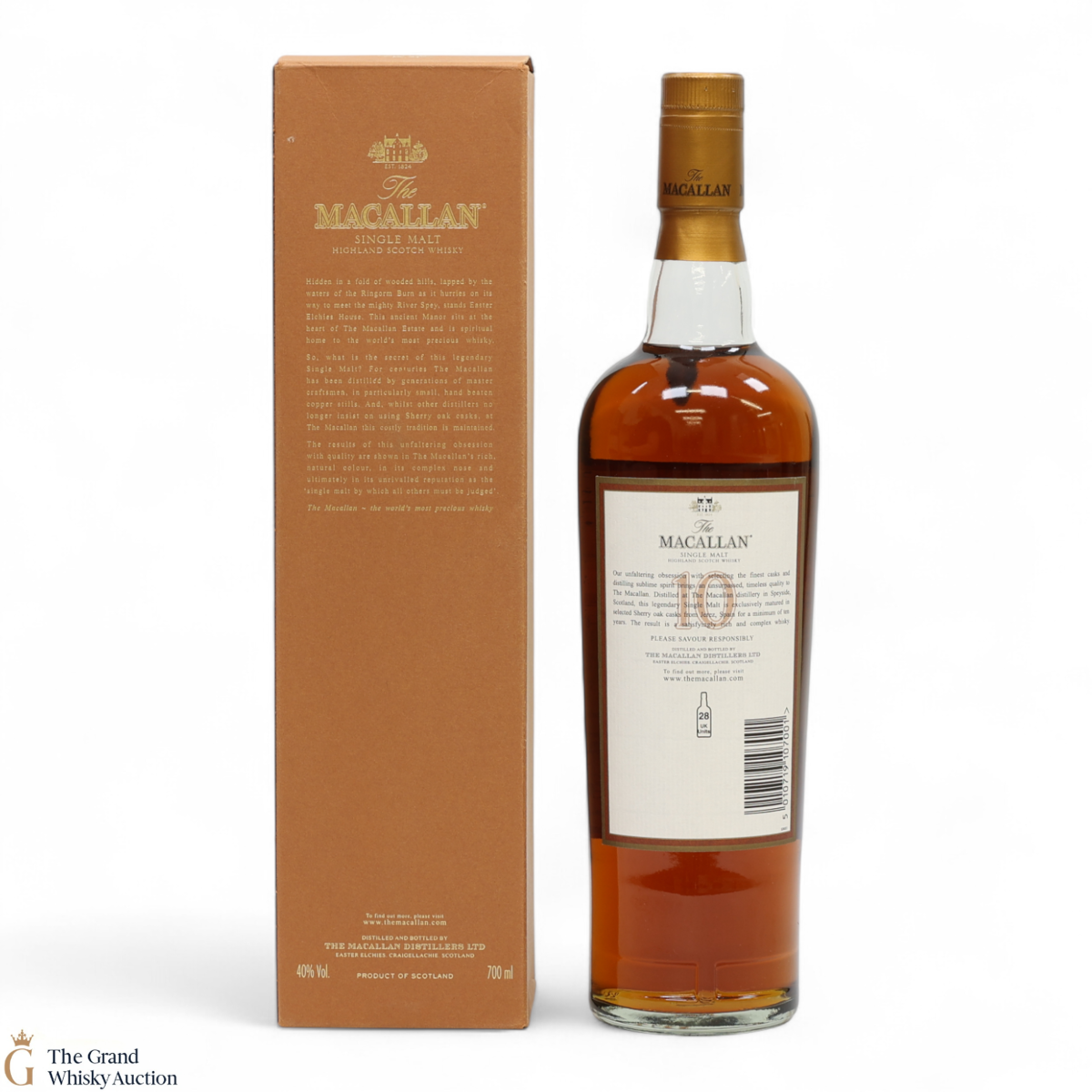 Distilled at the world-renowned Macallan Distillery in Speyside, this single malt was matured exclusively in sherry oak casks from Jerez, Spain. It was aged for a total of 10 years prior to bottling at a strength of 40% ABV.