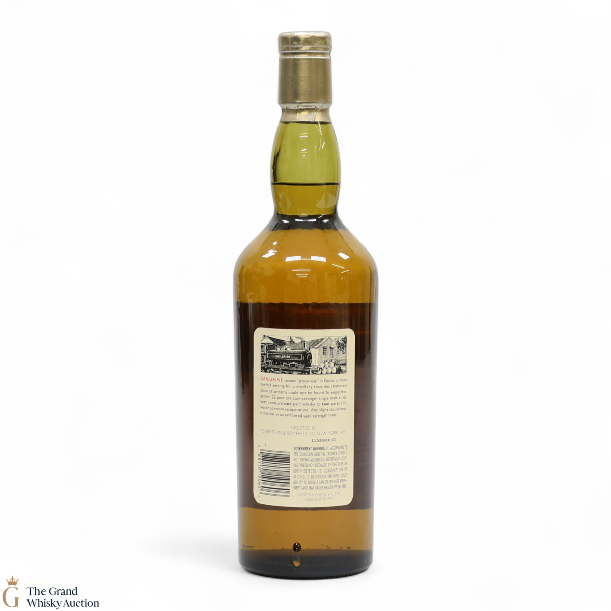 Due to the various ages of bottles and their seals, the condition of liquid is at the buyer's discretion and no claim can be lodged against failure/leakage in transit. Loss and breakage cover is available at 3% of the hammer price as standard. If the lot is not insured, no claim can be lodged against the courier or The Grand Whisky Auction for breakage or loss in transit.