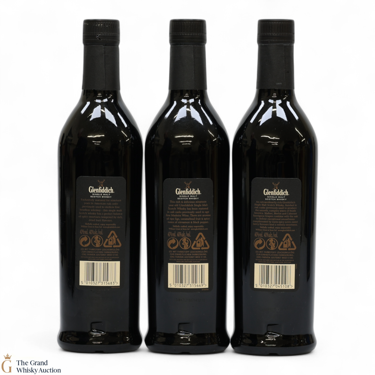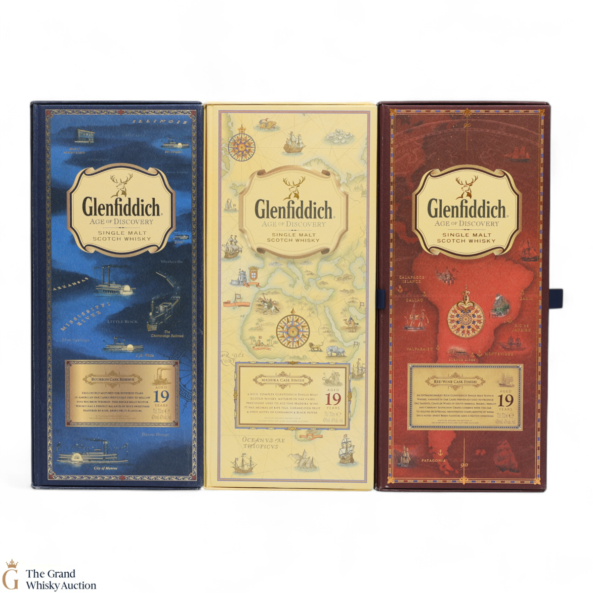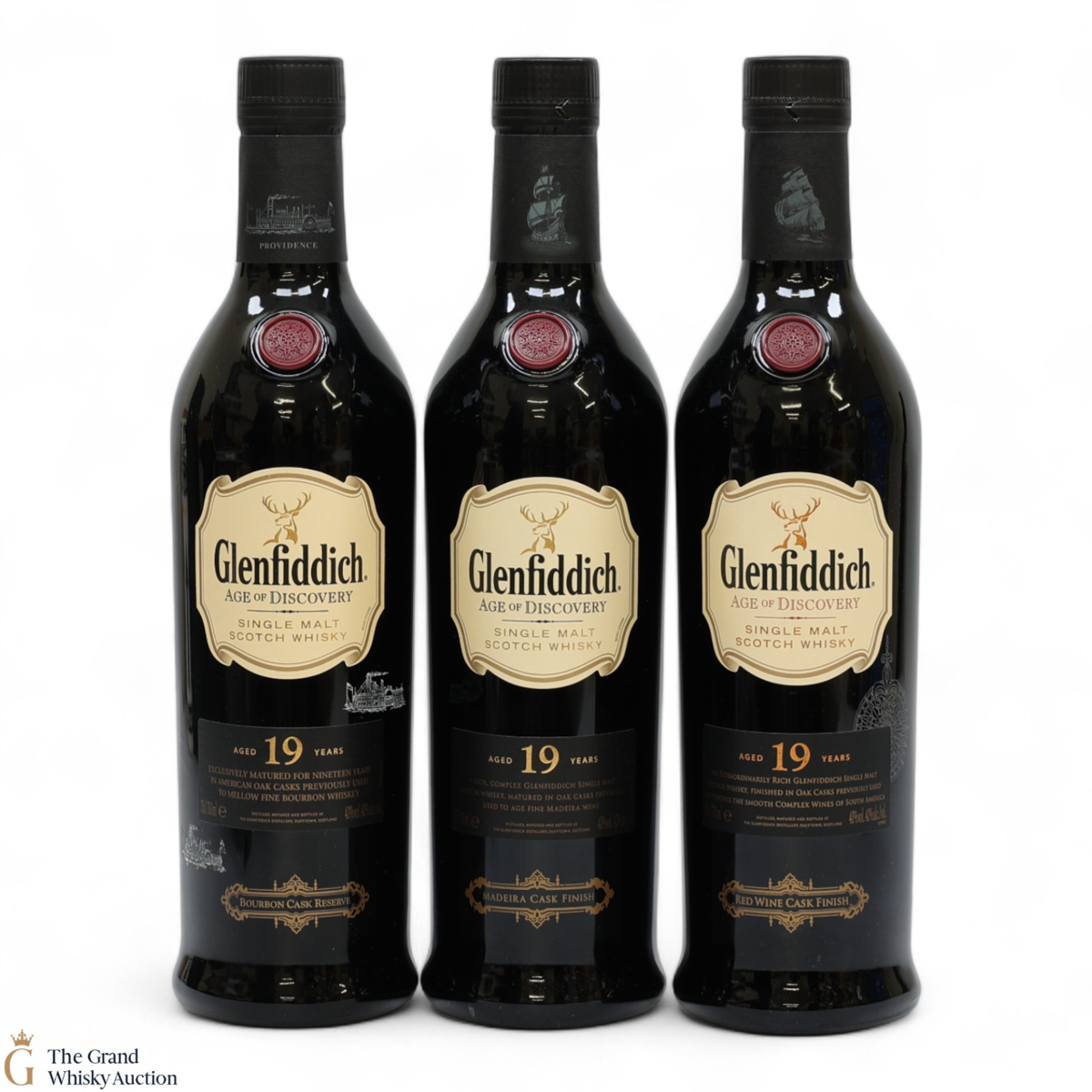 This lot contains 3 x 700cl bottles, one of each of the 19 year old Glenfiddich Age of Discovery Series:
