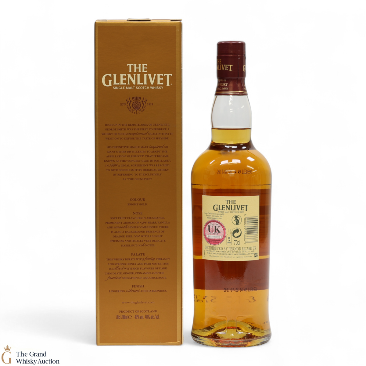 Due to the various ages of bottles and their seals, the condition of liquid is at the buyer's discretion and no claim can be lodged against failure/leakage in transit. Loss and breakage cover is available at 3% of the hammer price as standard. If the lot is not insured, no claim can be lodged against the courier or The Grand Whisky Auction for breakage or loss in transit.