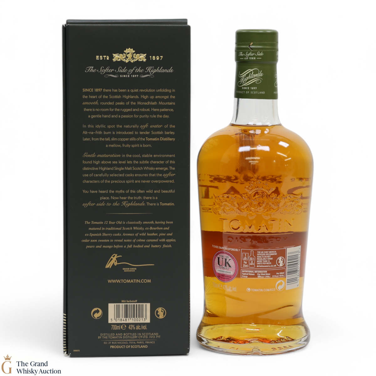 Due to the various ages of bottles and their seals, the condition of liquid is at the buyer's discretion and no claim can be lodged against failure/leakage in transit. Loss and breakage cover is available at 3% of the hammer price as standard. If the lot is not insured, no claim can be lodged against the courier or The Grand Whisky Auction for breakage or loss in transit.