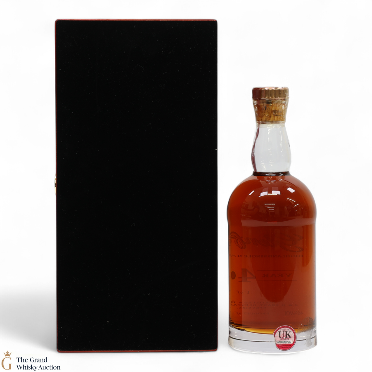 Distilled at Glenfarclas Distillery, this incredible 40-year-old whisky is beautifully presented with an engraved bottle and sturdy case.