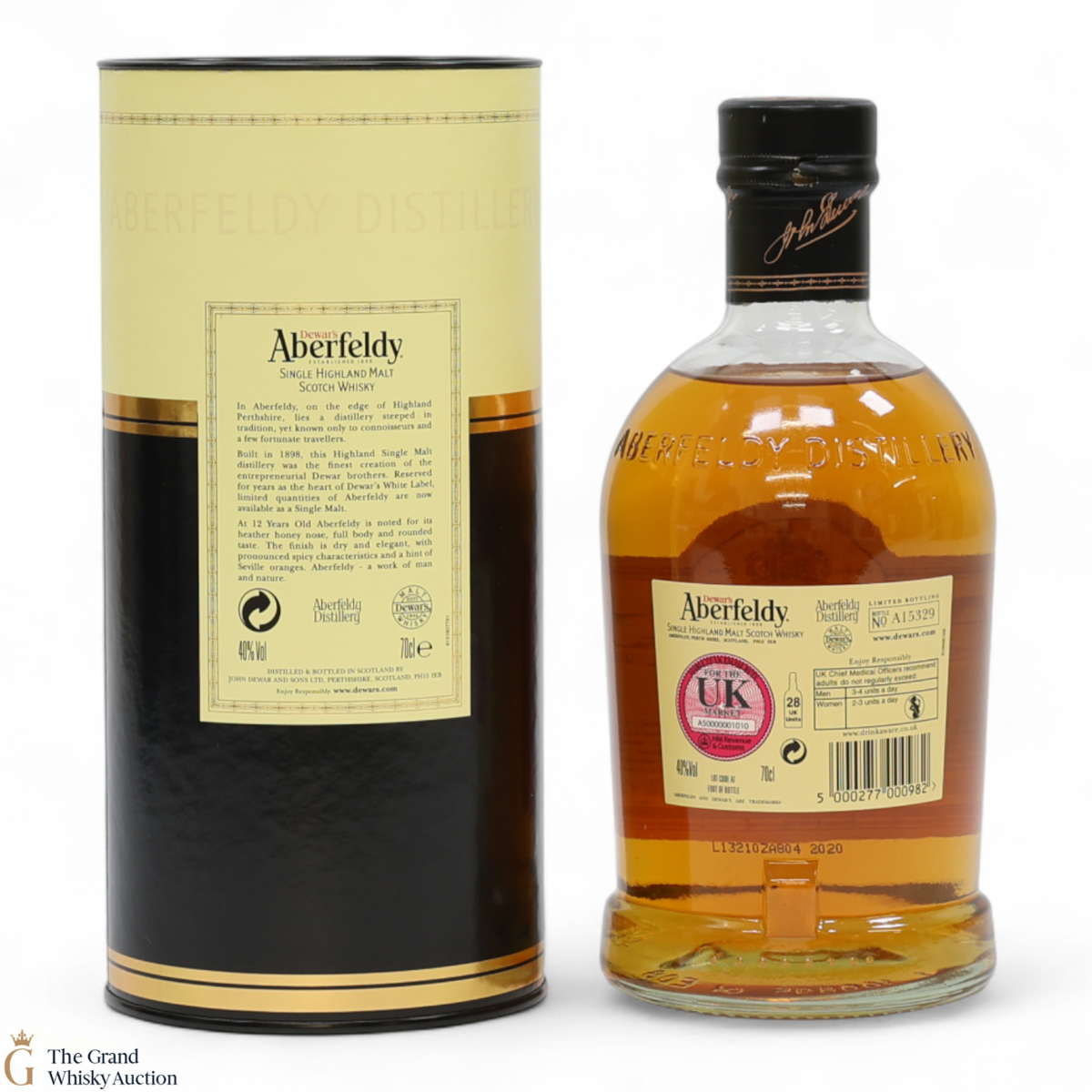 Due to the various ages of bottles and their seals, the condition of liquid is at the buyer's discretion and no claim can be lodged against failure/leakage in transit. Loss and breakage cover is available at 3% of the hammer price as standard. If the lot is not insured, no claim can be lodged against the courier or The Grand Whisky Auction for breakage or loss in transit.