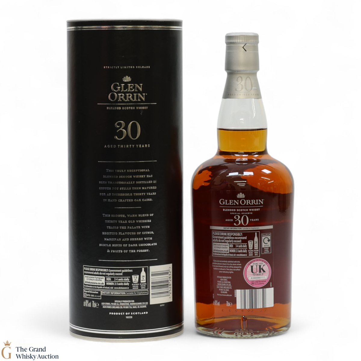 Bottled for Aldi, Glen Orrin 30-Year-Old - This blended malt has been matured in oak casks. It has a slightly sweet and rounded taste with rich fruit and a dry finish. 70cl, 40% ABV.