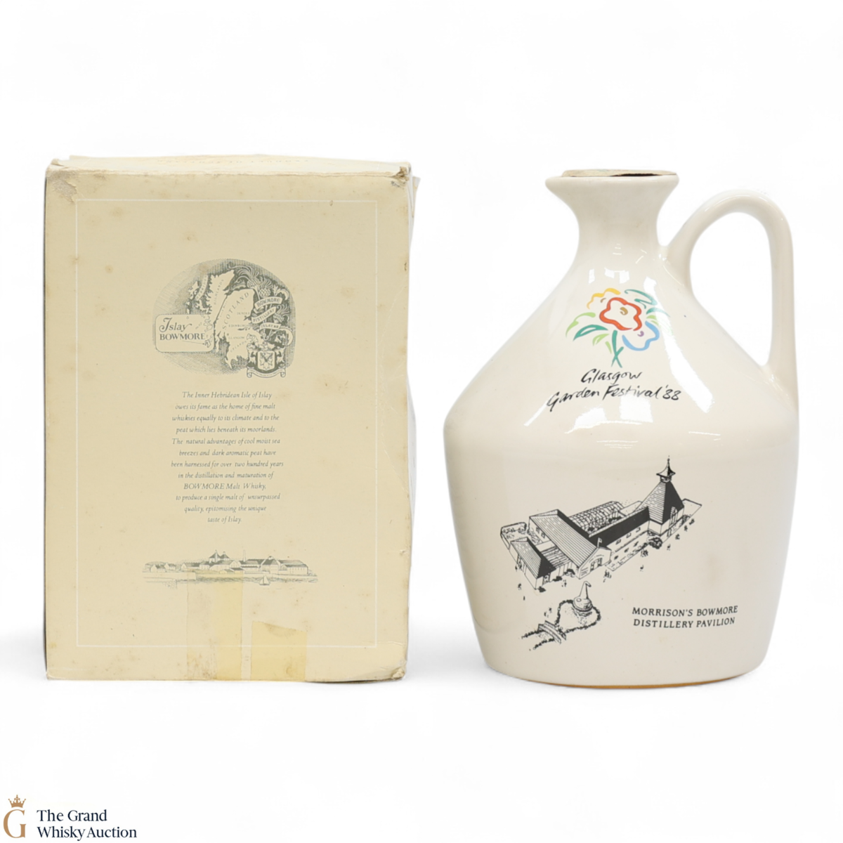 A rare ceramic Bowmore released for Glasgow Garden Festival in 1988, with Bowmore 15-year-old inside, which has hints of white chocolate, exotic fruits and pepper.