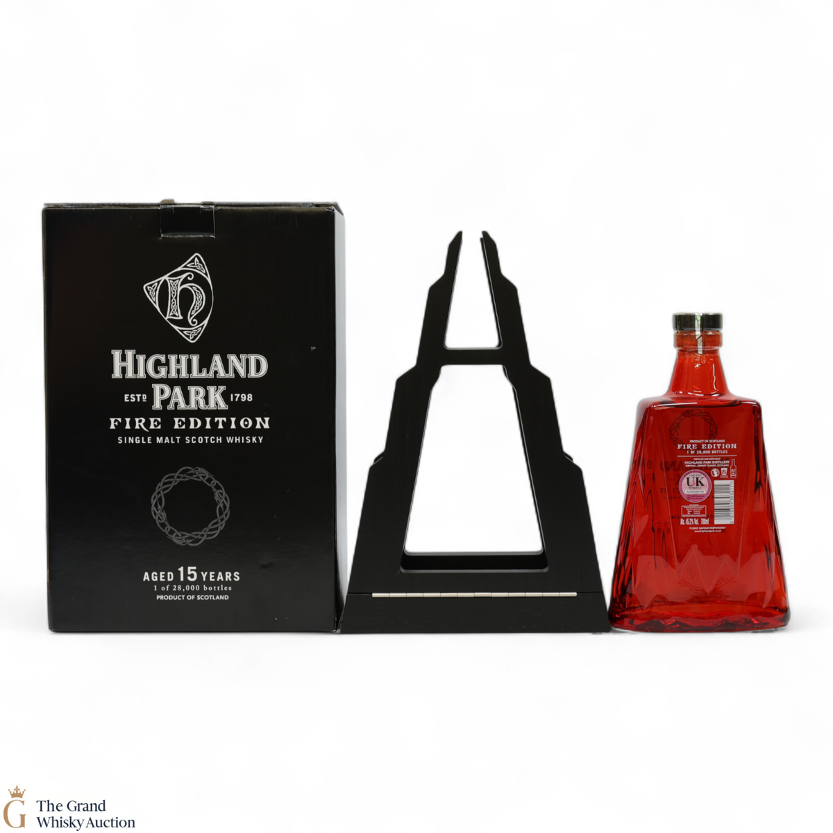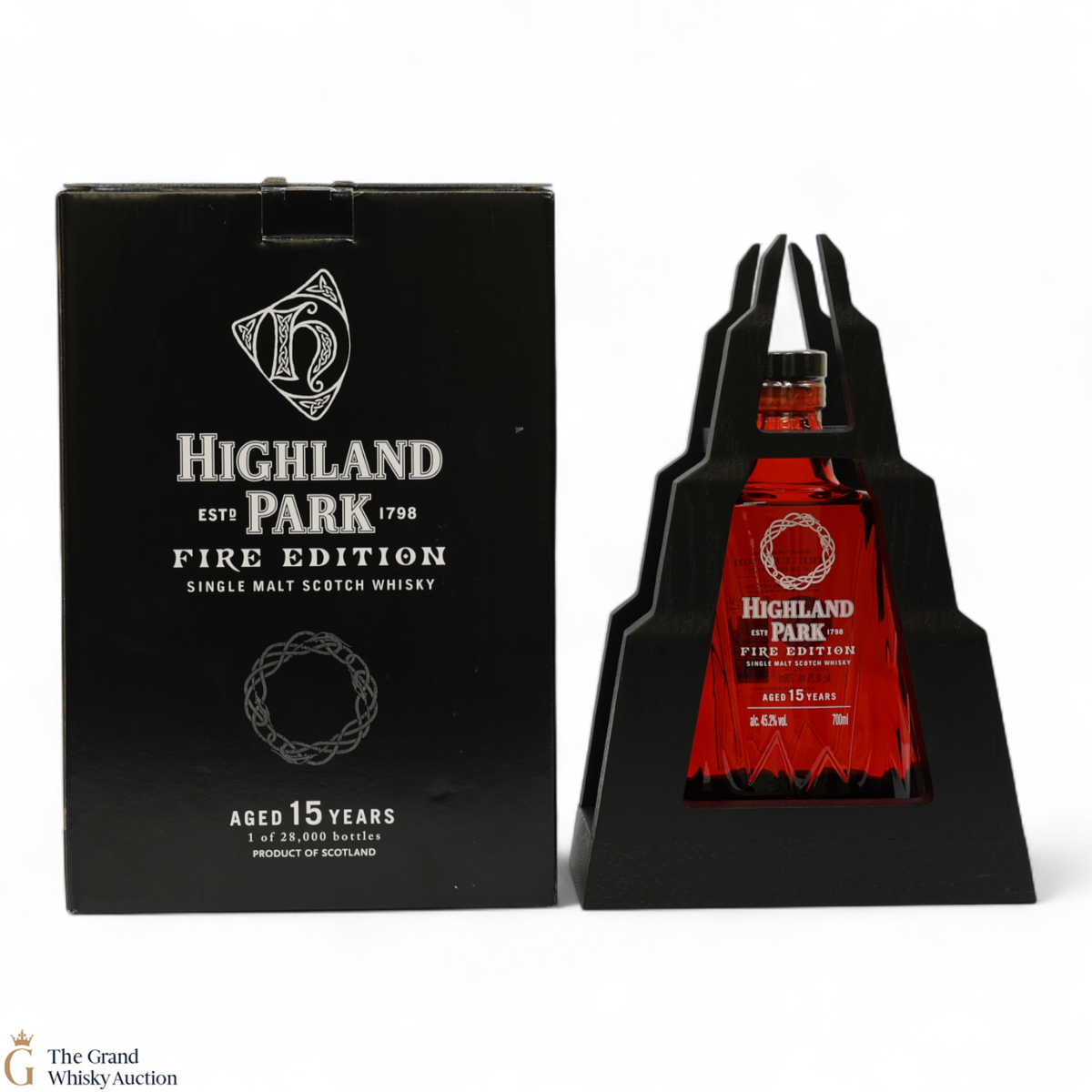This stunning Highland Park 15-year-old single malt follows the 'Ice' edition to complete this Highland Park two-part series. The 'Fire' edition celebrates Muspelheim, the glowing Norse fire realm of destruction. The malt was matured in refill Port casks and bottled at 45.2% abv. It's presented in a cradle shaped like a mountain.