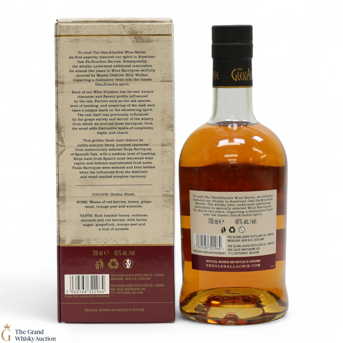 Distilled at the GlenAllachie Distillery, this single malt was matured for a total of 13 years, first maturing in an American Oak ex-bourbon barrel, then finished in a Rioja wine cask. Bottled at 48% ABV, this single malt is part of the limited edition GlenAllachie Wine Series.