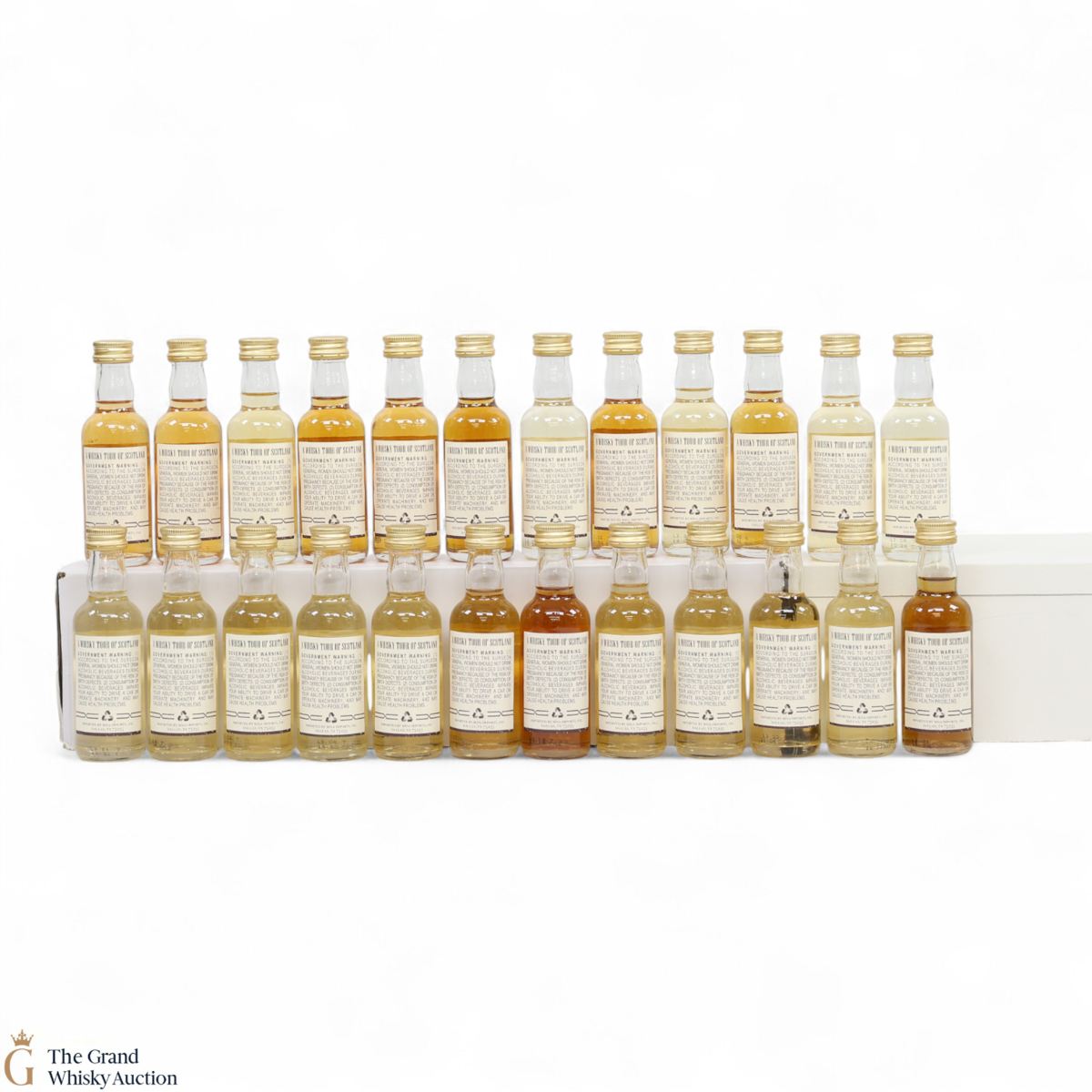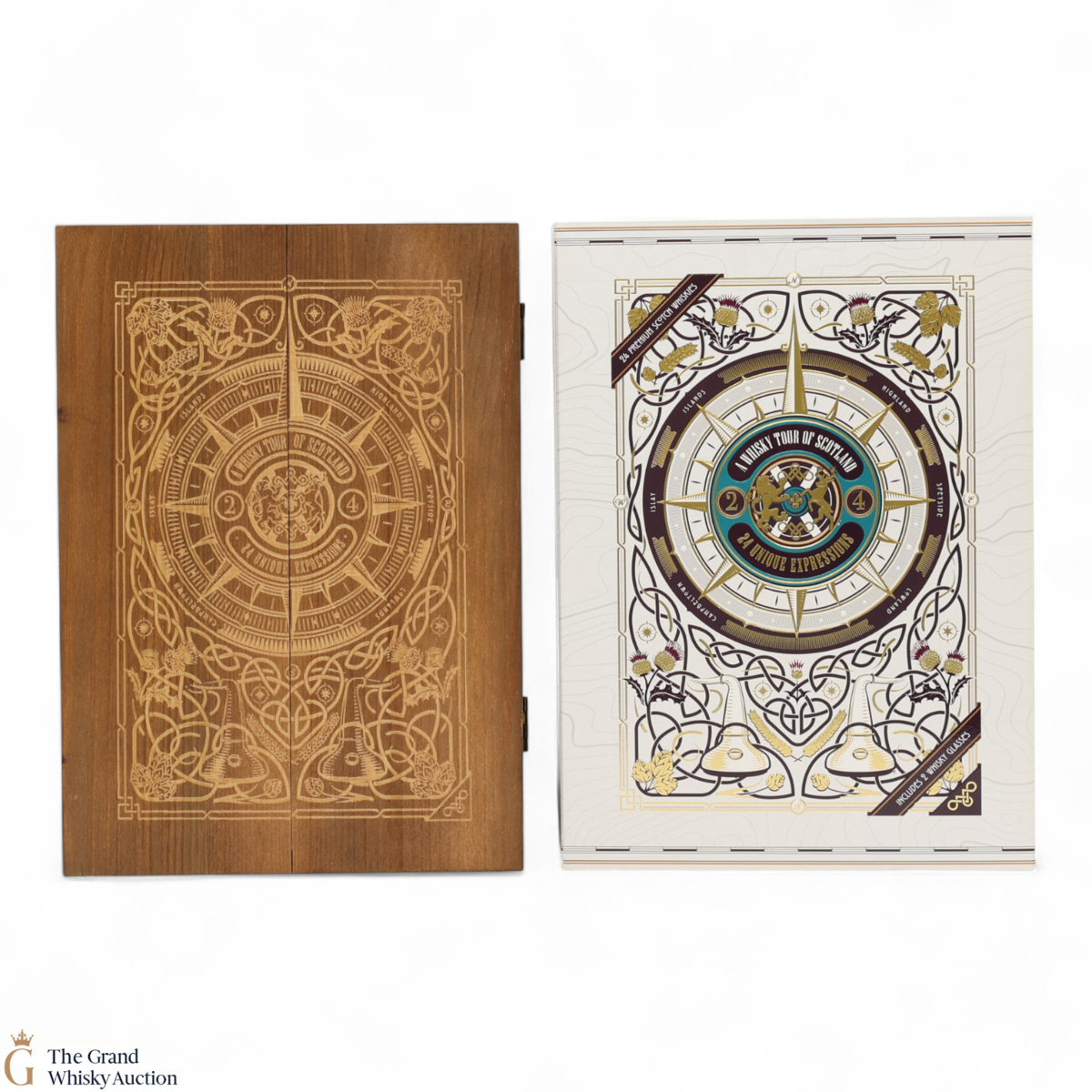 This very well-presented box of minis represents a whisky tour of Scotland. You can enjoy 24 days of the most diverse whiskies as listed below -