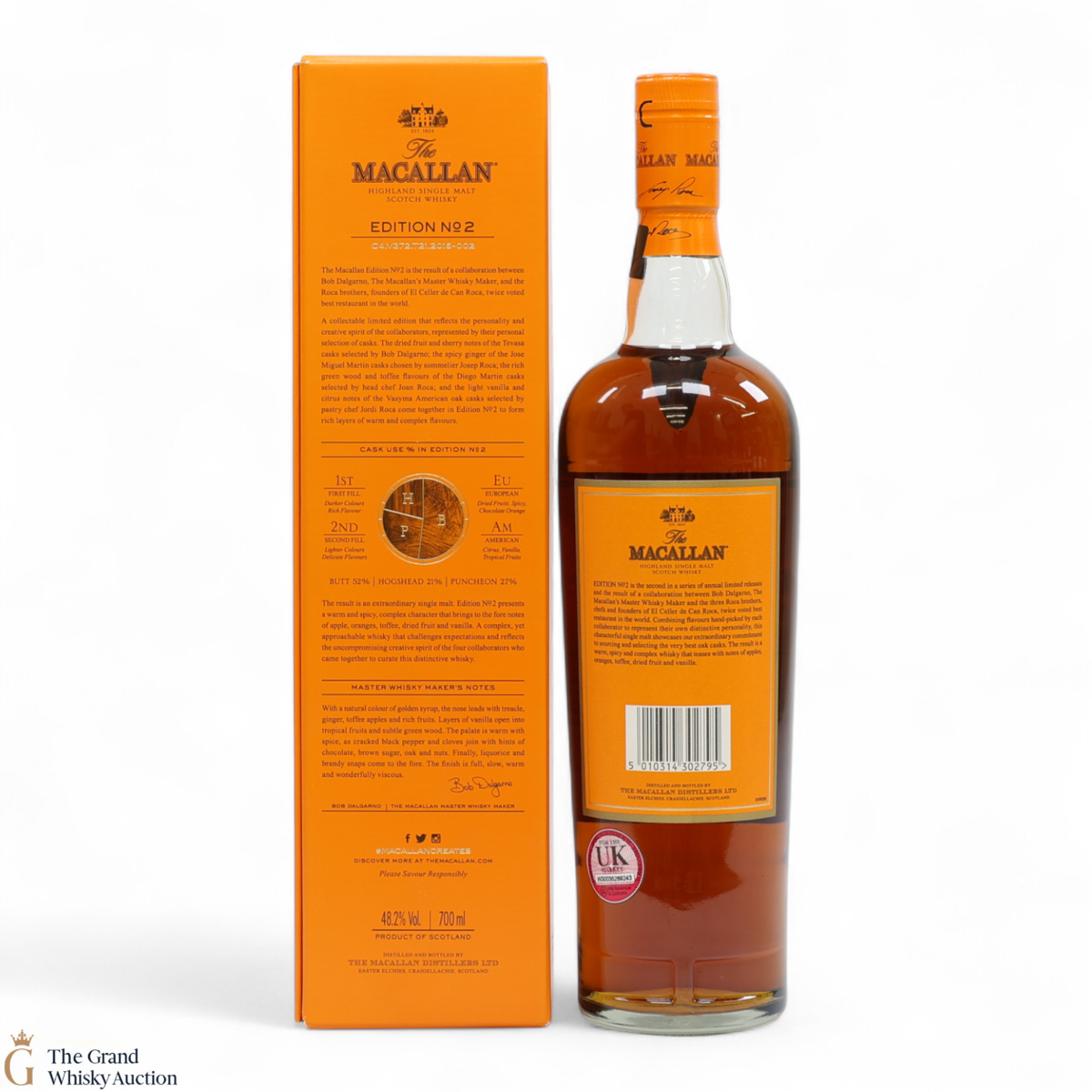 This is the second release from the Macallan Edition series. Edition No.2 is a collaboration between Macallan's master blender Bob Delgarno and legendary Spanish chefs Joan, Josep and Jordi Roca. The Rocas are the three brothers behind El Celler de Can Roca (named Best Restaurant in the World twice by Restaurant magazine). This single malt was drawn from a combination of sherry puncheons, butts and refill hogsheads.