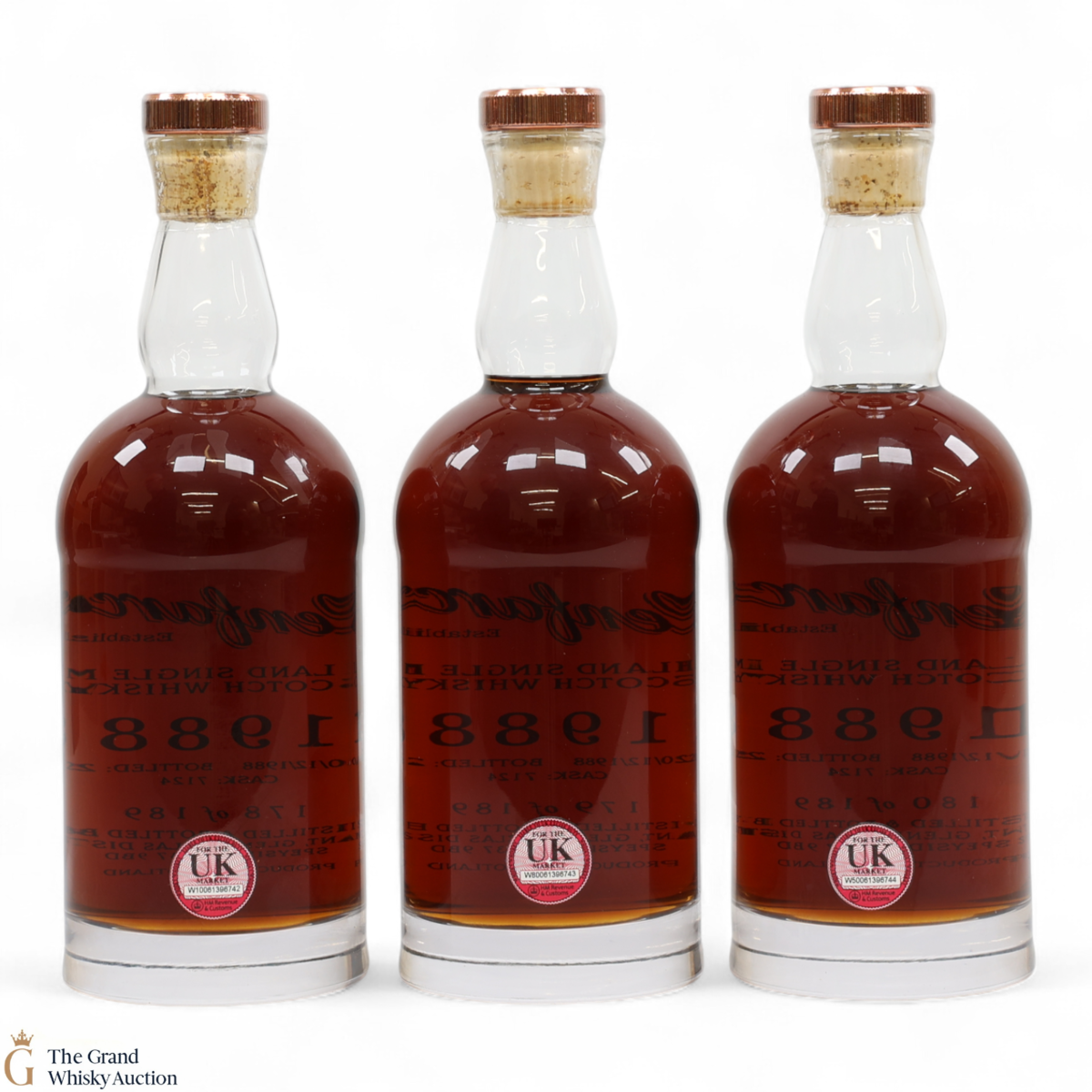 Due to the various ages of bottles and their seals, the condition of liquid is at the buyer's discretion and no claim can be lodged against failure/leakage in transit. Loss and breakage cover is available at 3% of the hammer price as standard. If the lot is not insured, no claim can be lodged against the courier or The Grand Whisky Auction for breakage or loss in transit.