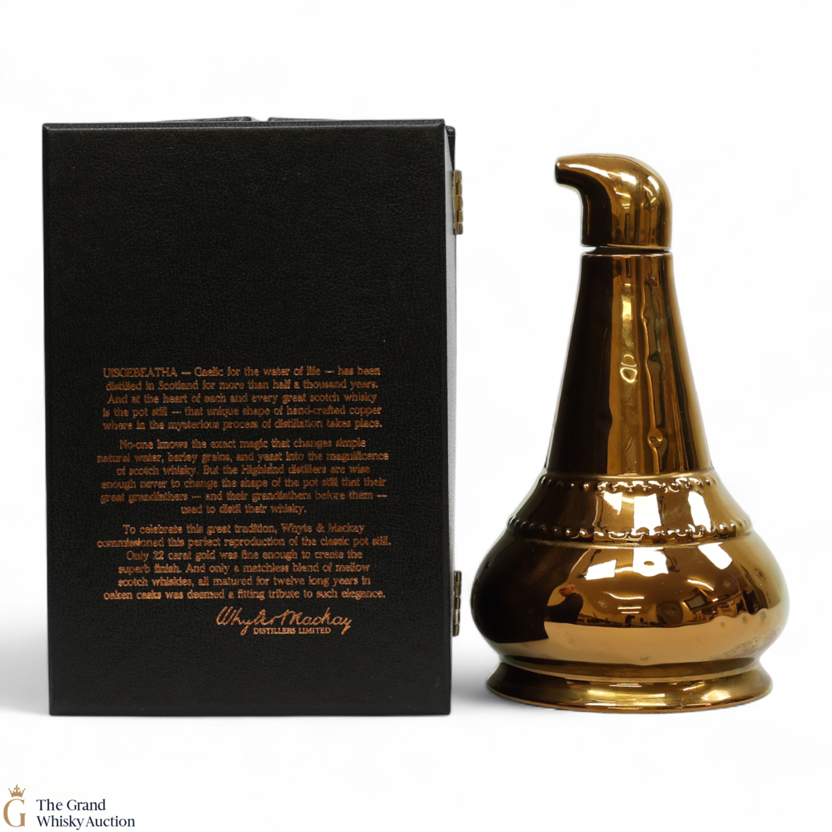 Presented in this superb-looking golden pot still shaped decanter comes this 12-year-old Whyte and Mackay blend.