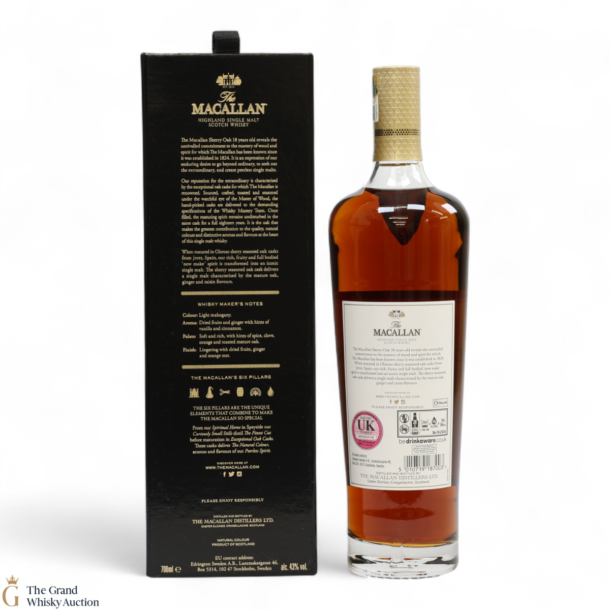 This annual release of The Macallan's popular 18 Year Old Sherry Oak is matured exclusively in sherry seasoned casks, built from both Spanish and American oak, providing a beautifully dark flavour with rich aromas.