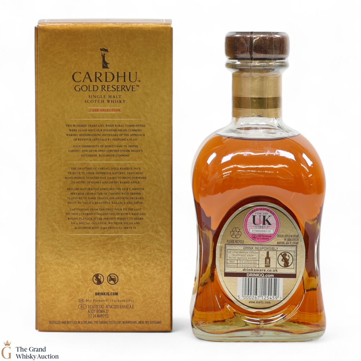 Cardhu is known for being an easy-drinking and sweeter style of whisky. This Gold Reserve Cask Selection has been made with the finest Cardhu casks; the whisky has been aged in toasted oak casks, which has led to notes of toffee apple whisky.