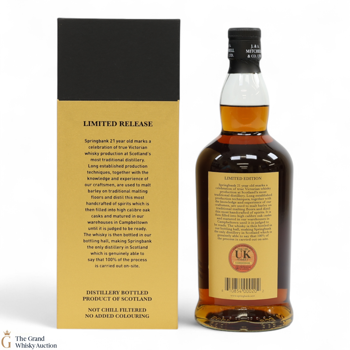 Due to the various ages of bottles and their seals, the condition of liquid is at the buyer's discretion and no claim can be lodged against failure/leakage in transit. Loss and breakage cover is available at 3% of the hammer price as standard. If the lot is not insured, no claim can be lodged against the courier or The Grand Whisky Auction for breakage or loss in transit.