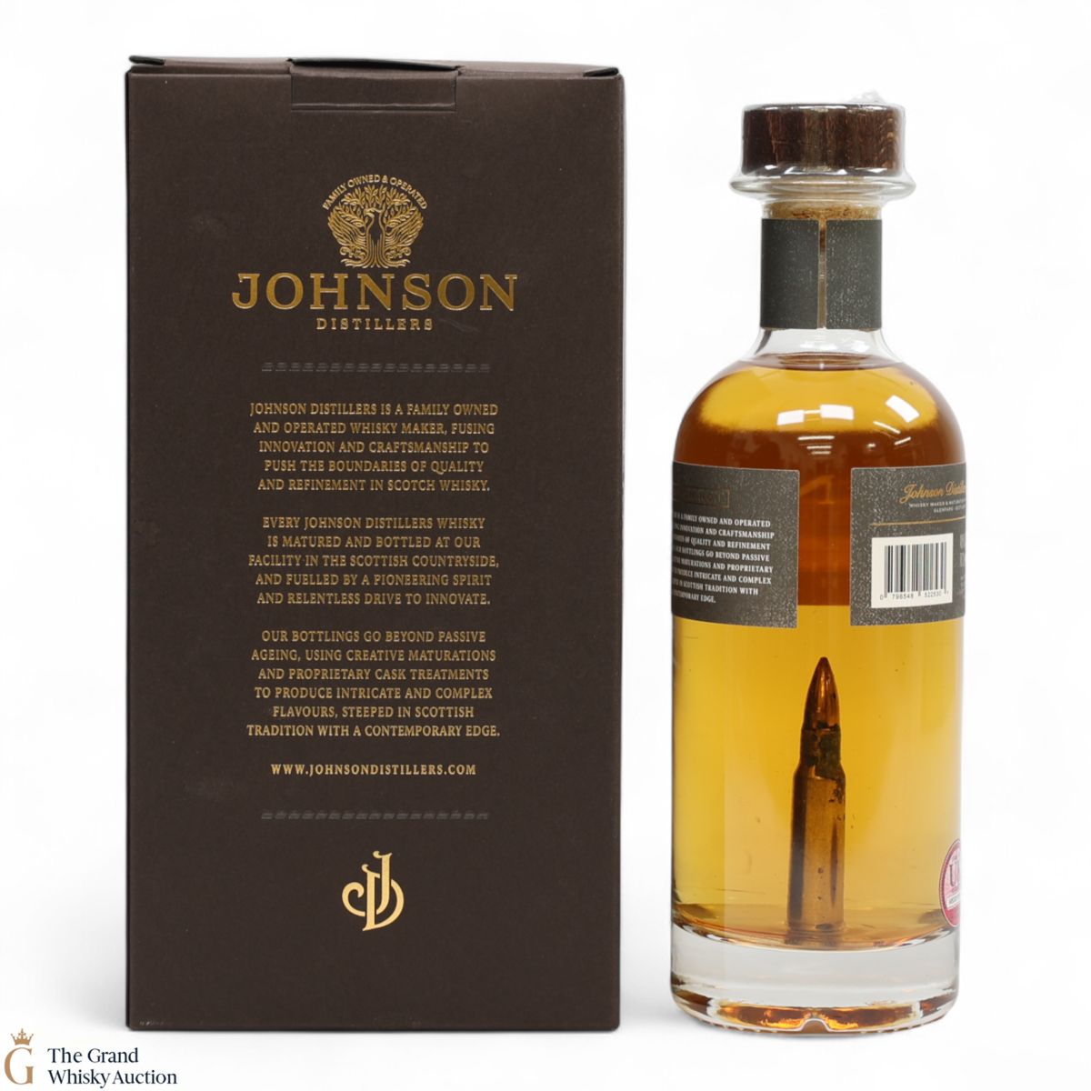 A striking single malt whisky from an undisclosed Scottish distillery. Each bottle contains a lacquered, lead-free bullet round — safely sealed and entirely inert — offering a bold, collectable twist on traditional whisky presentation.