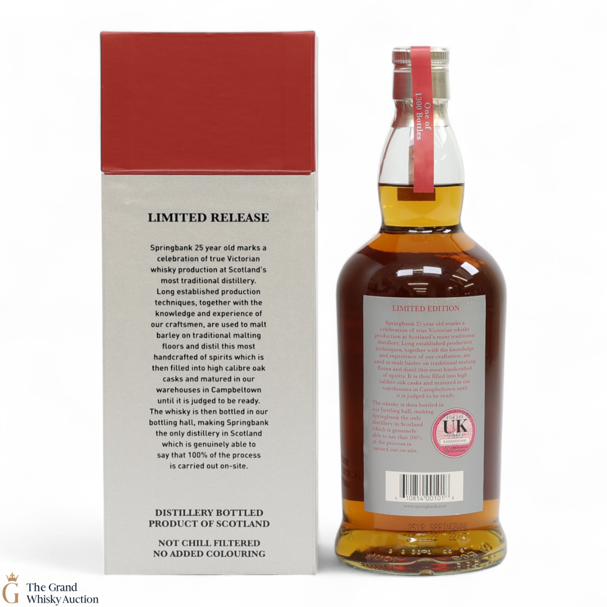 A very limited release from the Campbeltown distillery Springbank. Bottled in 2022 this 25 Year Old was bottled at 46% ABV and is one of only 1,300 bottles. This bottling has been made up from a combination of casks; 40% bourbon casks, 60% sherry casks.