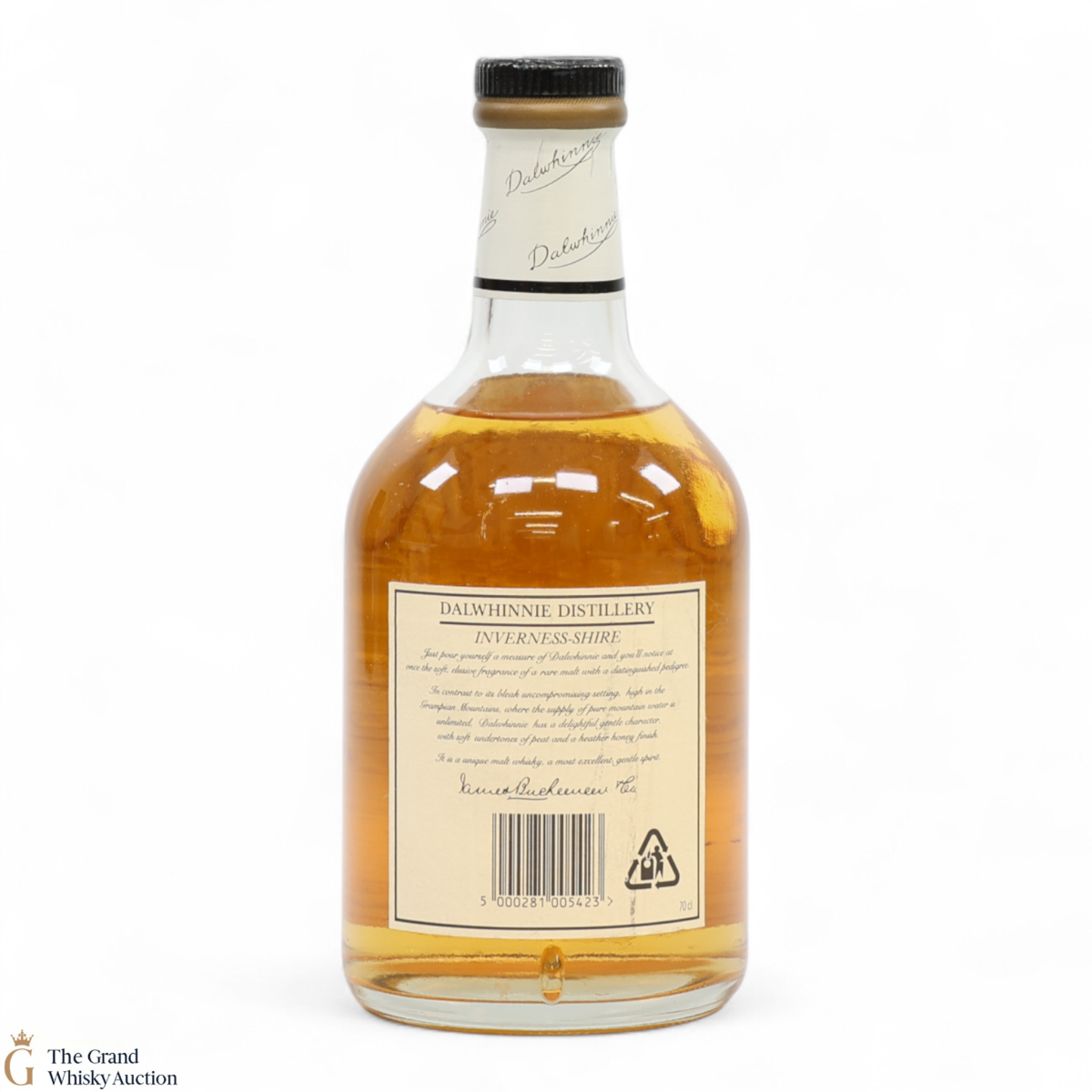 Due to the various ages of bottles and their seals, the condition of liquid is at the buyer's discretion and no claim can be lodged against failure/leakage in transit. Loss and breakage cover is available at 3% of the hammer price as standard. If the lot is not insured, no claim can be lodged against the courier or The Grand Whisky Auction for breakage or loss in transit.