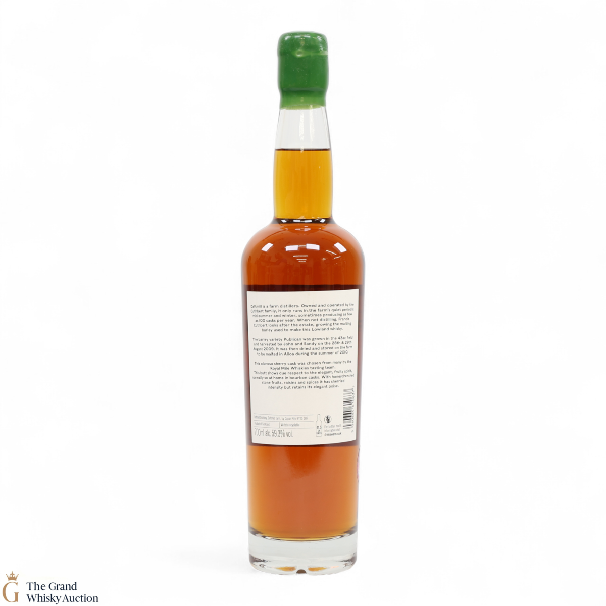 The cask yielded just 638 bottles. This expression has been bottled for Royal Mile Whiskies. Daftmill is a farm distillery. Owned and operated by the Cuthbert family, it only runs in the farm's quiet periods; midsummer and winter, sometimes producing as few as 100 casks per year.